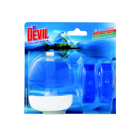 Dr. Devil WC tekoči osvežilec 3 v 1, 3 X55 ml Modra - polar aqua Zelena - nature fresh Rumena - lemon fresh Odišavi, čisti in preprečuje nabiranje vodnega kamn...