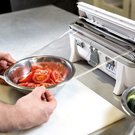 Vrhunska PVC folija za živilsko uporabo z odlično oprijemljivostjo, raztegljivostjo in trdnostjo. Primerna je za pokrivanje in zavijanje vseh vrst živil, razen čistih ...