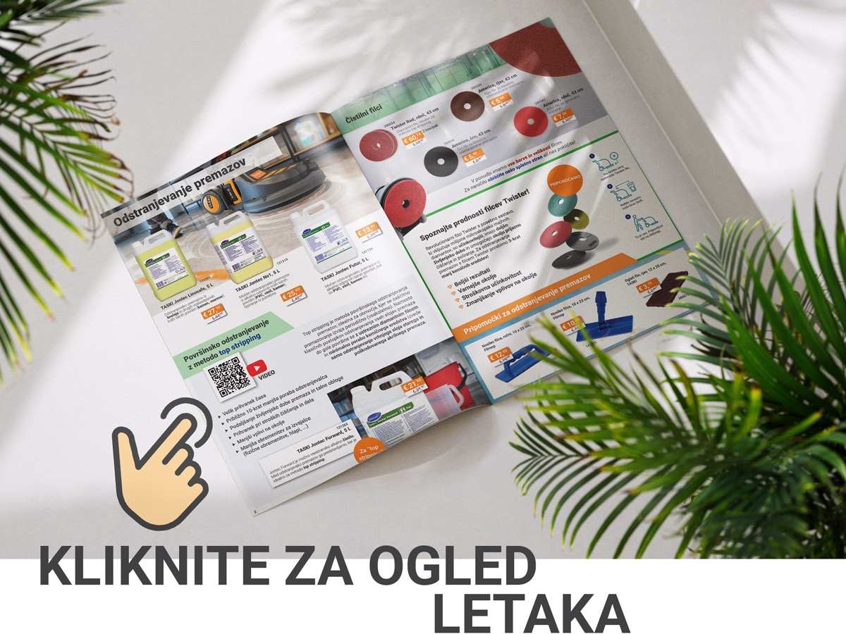 Predstavljamo letošnjo akcijo odstranjevalcev, premazov, pripomočkov in strojev za vzdrževanje in obnovo tal. Ponudbo dopolnjujemo s ključnimi sredstvi in pripomočki za generalna čiščenja.