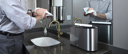 Dezinfekcija za roke je že postala del obvezne opreme gostinskih objektov. Gostje se bodo pri vas gotovo počutili bolje, če jim zagotovite učinkovita sredstva, ki so prijetna za uporabo, in če omogočite njihovo doziranje iz estetskih in dobro vzdrževanih podajalnikov. Poskrbite, da bodo vaši sanitarni prostori vedno dobro založeni s kakovostnim sanitarnim materialom.