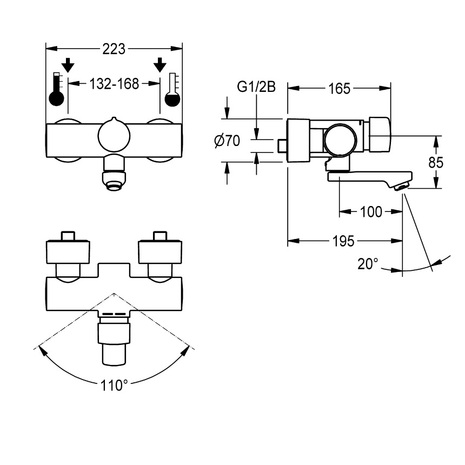 F5S-Mix samozapiralna mešalna armatura za pritrditev na steno, z vrtljivo ročko z možnostjo zaklepa. Za sanitarije. FRAMIC samozapiralna mešalna kartuša, hidravlično k...