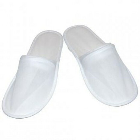 Copati beli, spredaj zaprti, hotelski, iz netkanega materiala, s tršim podplatom.