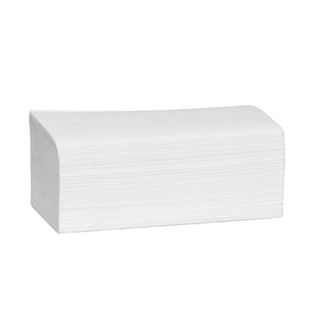 Papirnate brisače "V" zložene, 2-slojne, bele barve. Sestava: 100 % celuloza Število slojev: 2 Dolžina razgrnjenega izdelka: 21 cm Širina razgrnjenega izdelka: 2...