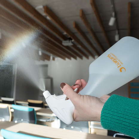 Plastenka z nastavljivo razpršilko, ki jo lahko uporabljamo v vseh pozicijah (tudi "na glavo"). Izdelana iz PE plastike, z merilom v ml. Volumen je 630 ml. Razpršilka...