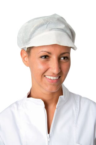 Kapa za delo v kuhinji, bela, s šiltom, 100 kos/pak
